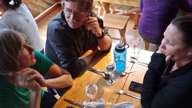 The remainder of the hike went smoothly though the weather was not spectacular. It was very muddy at spots and there were a few places were boards had been placed to walk on since it got too muddy. On one of those, I lost my balance as the planks were not quite horizontal and I fell off. Luckily for me, I nailed the landing (2 ft down). Wish there were a video of it! Still we enjoyed the closer views of the torres as we headed to our resting place for the night (and a hot meal!).
