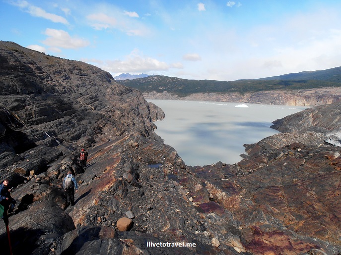 I couldn’t help but compare this glacier hike to my helicopter ride onto the Franz Josef glacier in New Zealand. On the one hand, flying the heli to the glacier saved time so we spent more time on the glacier. Plus just the thrill of flying in a helicopter and enjoying a magnificent approach to the glacier. On the other hand, climbing the moraine at Grey Glacier was a fun experience.