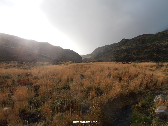 We started off on our hike at 3 PM which felt late. It rained a good bit on the trail that day so I did not take as many pictures as I would usually do. The good news was that the rain was hitting us from behind vs. the front which is way more annoying. Not being able to take photos was not a big disappointment, though, because we were on the same trail we had walked the day before in the other direction to get to Refugio Grey. Things finally cleared up when we were getting to the end of the trail (around 7 PM) which was nice. I got a couple of pictures in anyway to remember the end of the day.