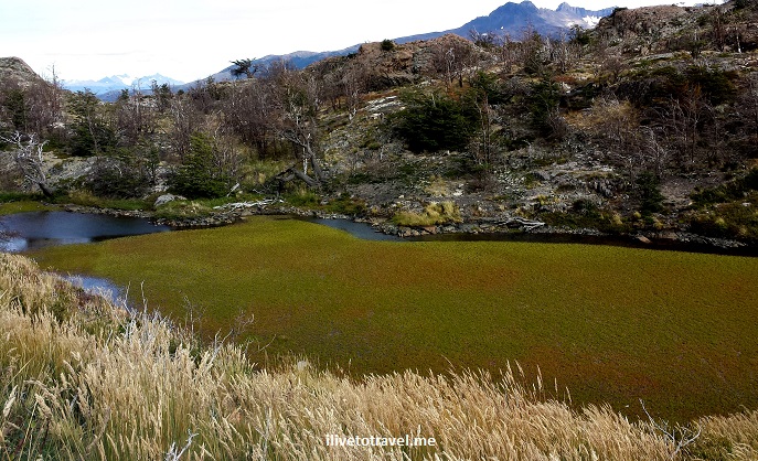 Among the beautiful scenes I saw was this marsh or bog (not sure what it was, technically) which sat, across the lake, the Grey glacier.Β Out of a movie!
