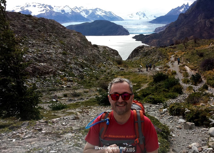 One of our vantage points, the Mirador Lago Grey, was close to the highest point on this trail sitting at around 250m over sea level.Β By virtue of its location and altitude, it offered phenomenal view of the glacier straight ahead.Β And it was WINDY up there!!!