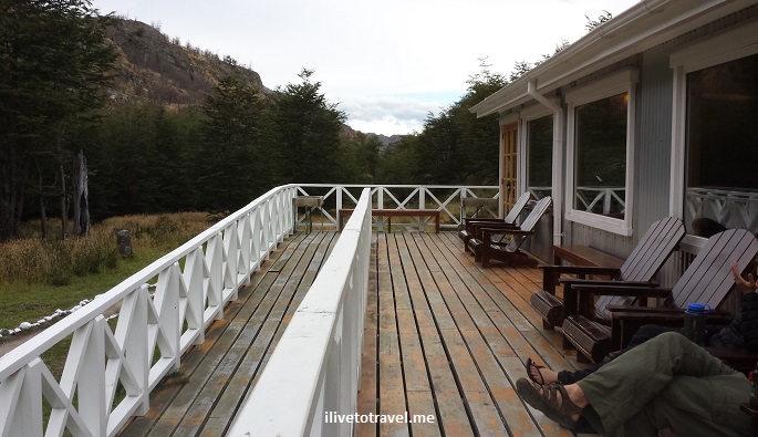 And finally, we arrived, 4 hours and 15 minutes later!Β The Refugio Grey was very welcoming and a great place to rest and relax.Β The outdoor seating area hosted us as we sipped some wine after showering.Β Eventually we made it inside for a great meal (carne mechada and rice chased by chocolate mousse!) and camaraderie.