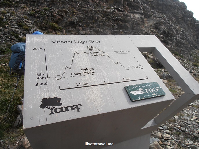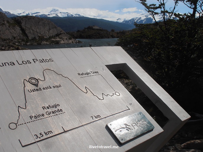 At this point, we had covered 1/3 of the total hike for the day as the sign at Laguna Los Patos shows.Β We would encounter a couple more of these signs before reaching our destination.