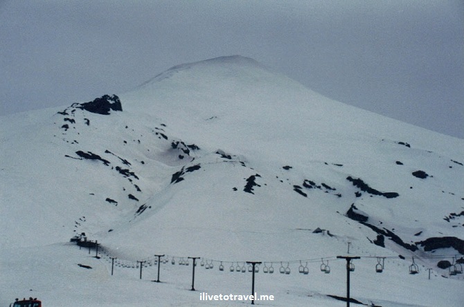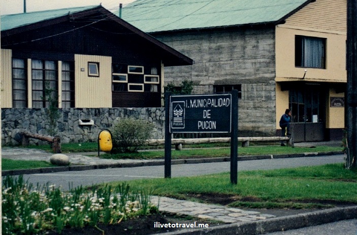 Many moons ago, I spent a few days in a beautiful corner of Chile: Pucón. Pucón, about 480 mi (775 km) south of Santiago, sits on the eastern shorelines of Lake Villarica in the region called Araucanía, looked over by the Villarica volcano. The town by now has gained reknown for its beautiful setting and the opportunity for great outdoor activities (skiing, hiking, white river rafting, hot springs, etc.). Maybe it is now a little too popular but its setting is definitely gifted and well worth going down the beaten path to it. Warning: The photos are “vintage”, meaning pre-digital and by a dozen years or so! They may not do justice to this part of Chile – but I hope you can imagine…