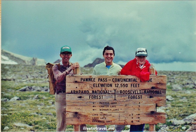 My roommate had family in Boulder and I got to meet them which was very nice. It turned out to be my introduction to hiking. My friend’s uncle invited me to go hike with him and his not-quite-a-teen son up to Pawnee Pass passing Long Lake and Isabelle Lake along the way to get to our destination at 12,550 ft in altitude, right at the Continental Divide. I had no training for hiking and had only spent a couple of weeks at Boulder altitude. This was going to be FUN.