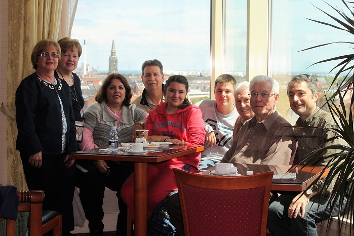 Later we branched out big time and splurged with a Baltic cruise! She and her family, with our parents, an aunt/uncle, and I, flew to Copenhagen to catch our Baltic cruise. We spent a little time in Copenhagen exploring and then went on the cruise. Stockholm (Sweden), Berlin (Germany), St. Petersburg (Russia), and Tallinn (Estonia) were the stops we made and we all loved both the sunsets over the Baltic Sea and the ports we visited. It was a very memorable trip since there were 9 of us. Our favorite adventure was figuring out how to get everyone into the executive lounge I had access to due to my status for breakfast and happy hour! Always successful, not the least because the staff was super nice and relaxed.