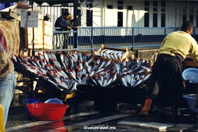 I opted to cross by boat. Upon landing on the other side, I went past a spot with a lot of activity where fishermen came in with their goods.