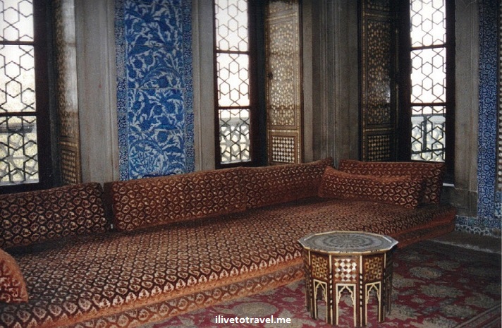 An interesting part of the palace is its imperial harem where the sultan kept his many wives, concubines but also where the women of the royal family lived – and schemed. It must have been an interesting place with all the intrigues, jealousies and power fights. The mother of the sultan ruled the roost so it surely must have been a fun place! You may picture the harem as a big room with women just laying around (I did, anyway) but it really is a series of buildings consisting of over 400 rooms! Of course, space was allocated according to rank. Oh, and this also included the eunuchs (slaves especially trained –and castrated- to serve in the harem) who guarded and took care of the harem.