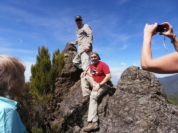 While the excitement of getting going on the climb of Mount Kilimanjaro made day 1 a great day, day 2 was no less exciting thanks to the moorlands and Shira Camp. For many of us in the Trekking for Kids group, that was mainly due to the change in the landscape we were to experience (and maybe having one day under our belt?). Day 1 on the Machame Route had us hike through the forest zone at the base of Mt. Kilimanjaro; nice but not terribly interesting (at least to me). We had heard day 1 could be tough if it were raining or had just rained with the mud, etc. But we had good luck on the weather front.