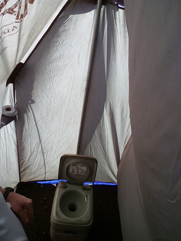 I am not sure how this post took such a turn, so I will bring myself back to the more pleasant topic of the hike… Since I have already brought the topic up, allow me to share a gratuitous photo. The portable toilet in the toilet-tent. (I know some of my friends and family are DYING to see a pic of one of these.) Are you glad I went “there”?
