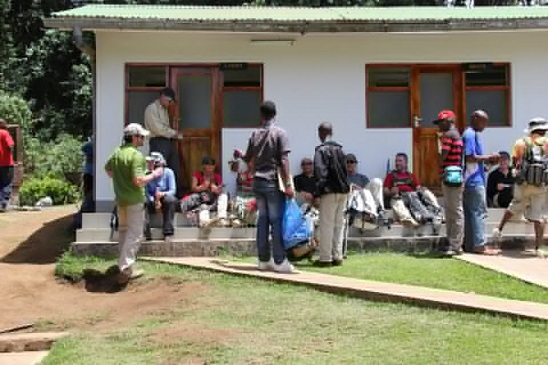 Finally, the sight we wanted and were ready to see. The Mweka Gate hut where we would sign in one last time. That signature proving we made it to that gate. The gate also being the place where we would sit around for an hour+ to wait for the certificates that would prove we HAD climbed Kilimanjaro (though there was no book to sign at Uhuru Peak…). We were not getting those certificates just yet as that took time. Our local outfitter, Zara Tours, would also be issuing us a certificate since their guides knew we did make it. We would receive both certificates that evening at the celebration with our guides and porters.