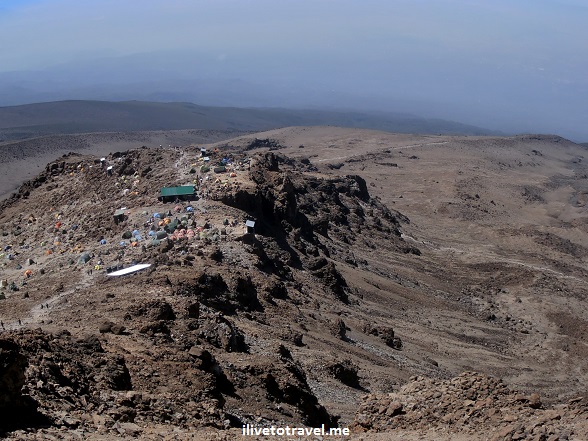 Looking down after the scree field crossing towards our former basecamp (Barafu Camp) where we would stop for lunch. Pin this image and stay focused on this as your goal after reaching the summit!