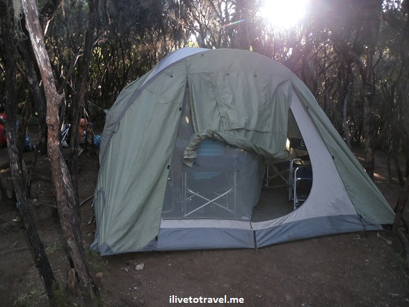 But, all good things (ha!) come to an end, and we reached our destination for the day: Mweka Camp. It is certainly not the most amazing camp in the mountain. But, at that precise moment, it was heaven. The customary “signing of the guestbook to prove we had been there” done, we approached our tents for a final night of camping. Hot water was brought to us and I happily washed off my face and did what I could to clean myself before having dinner. One final night of dirty Raul. LOL…