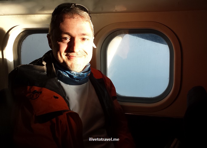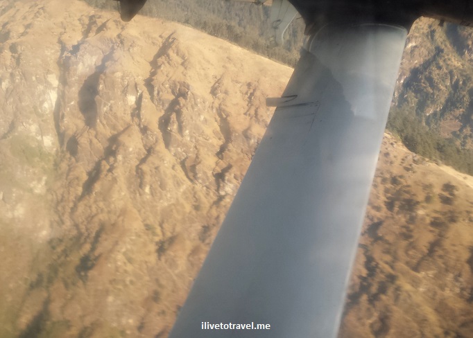 The plane sat maybe 20 people and the flight was not full. I got a seat on the left so I would be facing north (towards the Himalayas). Unfortunately, the windows were very dirty which assured that photos would not be National Geographic kind of material (that is my excuse anyway…). Gosh, if I’d known and they’d let us, I would have gotten off the plane pre-takeoff and cleaned my window!