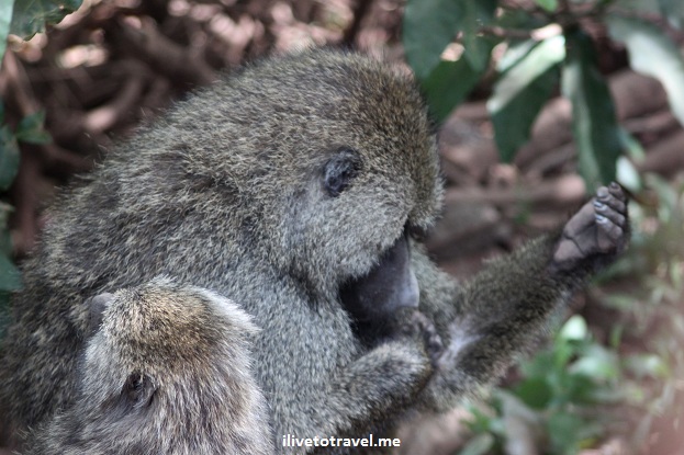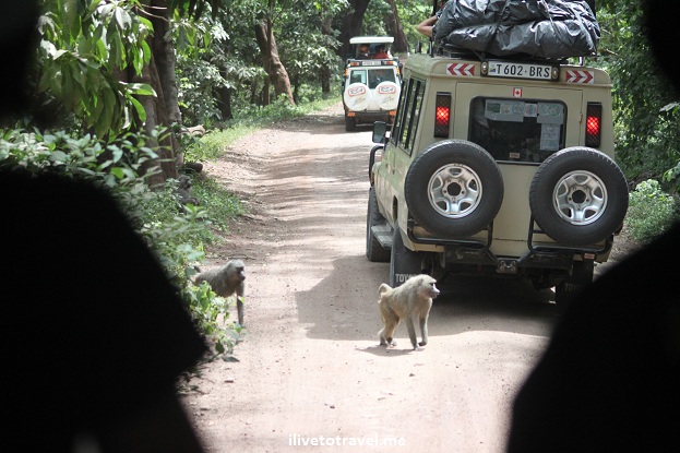 Baboon welcome to Lake Manyara NP