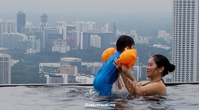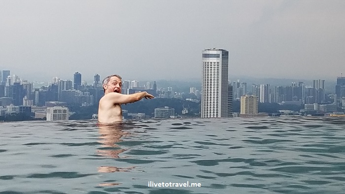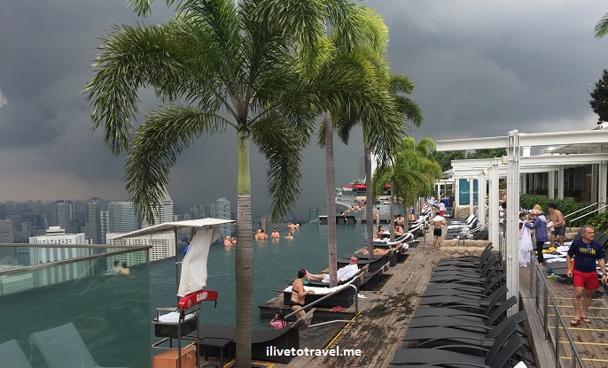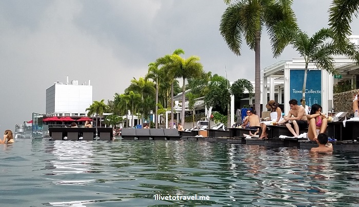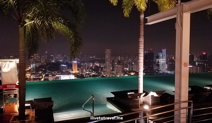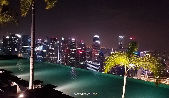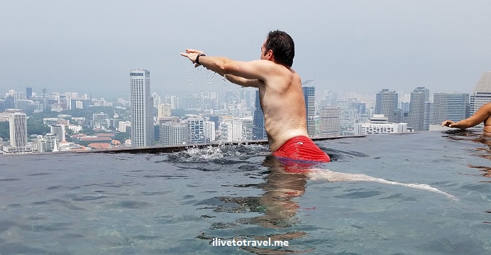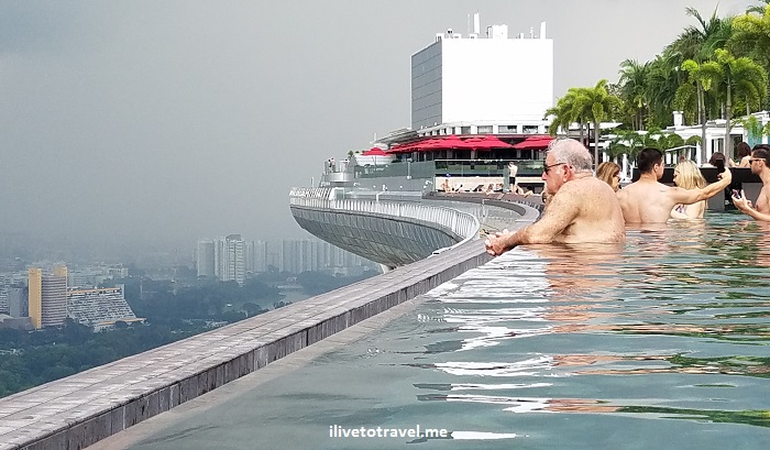 But just seeing it was not enough – I had to stay there: I wanted to enjoy the 57th floor infinity pool! You see, to access the pool you have to be a hotel guest – guest of guests cannot enter the pool area. And so I booked my stay. Sadly, my visit to Singapore was only over two nights and one day (Bangkok and Angkor Wat were also on the itinerary) so I only got to relax poolside one long afternoon. But it was WAY cool and well worth it. The place must have the best nighttime views of Singapore, as well as its daytime views!