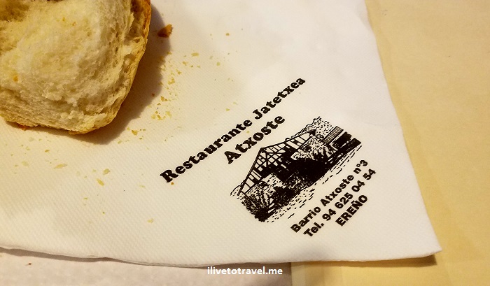 We kept driving and after a failed attempt to reach Lekeitio (there was some festival that weekend with all roads leading to it blocked of – very disappointing as it was high on our list), we went inland. And hunger was hitting… During a routine bathroom stop at a local bar in the town of Ereño (between Lekeitio and Bermeo but inland), my Mom came and told us the place had a restaurant and it had customers (my cardinal rule is to never go into an empty restaurant in an unknown town…). The place was cozy, on the ground level of a 2- or 3-story building (can’t recall). It was Restaurante Jatetxea Atxoste.