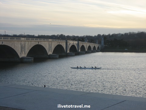 On the western bank headed towards Reagan National Airport, close to the LBJ Memorial