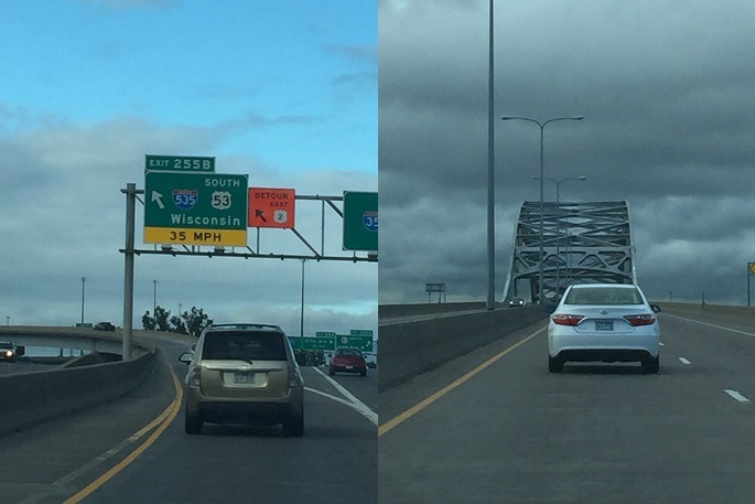 The next morning, we were planning to leave 10ish and with the time difference I knew I had a couple of hours to spare. I learned that Wisconsin, a state I had never been to, was just across the bridge from Duluth. Not one to waste an opportunity to add one more state to the list, I informed by co-workers that I would be getting up early and driving to the town across the water: Superior, Wisconsin (aptly named as it sits on the shores of Lake Superior…). It sits on the westernmost tip of this huge (sorry, popular word these days) lake in pretty much the northwestern corner of Wisconsin. Upon announcing that I was doing this, a co-worker said she would come – that’s the spirit!